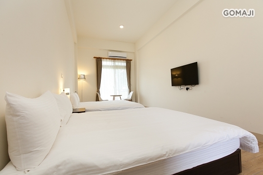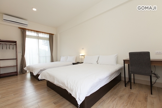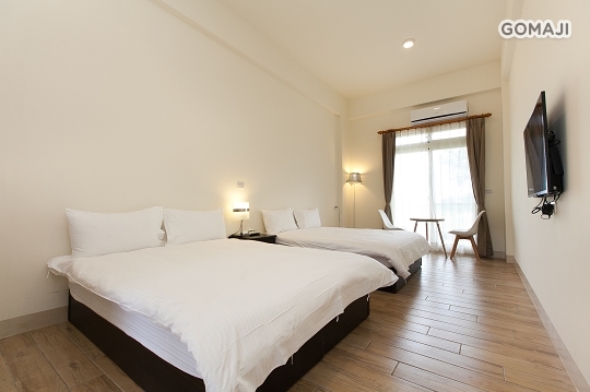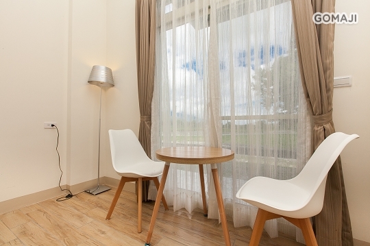 以簡潔的白色為主要基調,搭配溫暖進口木紋地磚,陽光從大面的落地窗向內灑落,望出窗外是片片青草綠,呼吸著新鮮空氣,希望旅人們能盡情享受純淨、簡單的渡假氛圍!