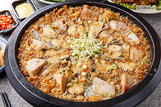 膨派的大鍋盛裝了豐富的食材,經過大廚細心的調味料理,口口細緻入味,經典的古早味,讓油蔥的香、芋頭的鬆軟還有鯧魚的鮮,融化麻吉的心。
