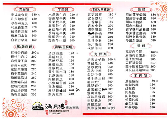 鄰近慈文國小的滿月樓懷舊小館,燙金紅底的毛筆字牆面,帶出濃厚的中式色彩,充滿喜慶的氣息的裝飾,讓用餐也帶著開心愉悅的心情,享受滿月樓的道道拿手好菜。