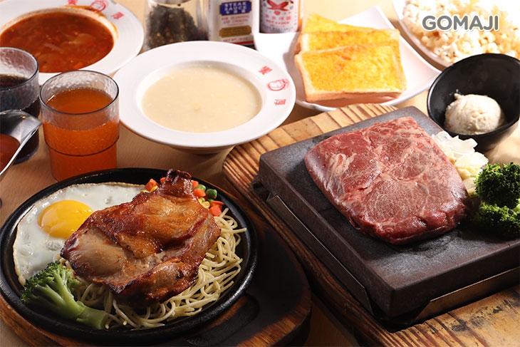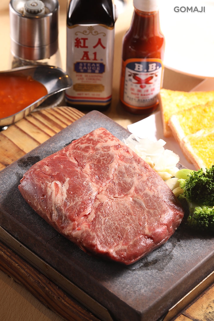 請麻吉屏息以待,立馬送上這份讓人驚呼連連的美味:15盎司的岩燒上肩牛排!這一大塊厚切牛排在岩板上滋滋作響,白煙隨之裊裊升起,迷人的氣味瀰漫鼻息之中,拿著刀叉切開牛排同時,血水更緩緩流下來,頓時令人垂涎欲滴,趕緊嚐進嘴裡,享受極致的滋味!
