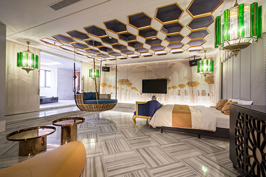 客房結合樂活休閒與現代新潮,用繽紛的色彩挑動視覺神經,豐富配色詮釋出全新的美學觀點,跳脫舊有框架,重新演繹奢華質感!寬敞空間、頂級設備、浪漫氛圍合而為一,讓您擁有極盡舒適的休憩體驗。