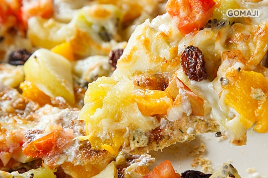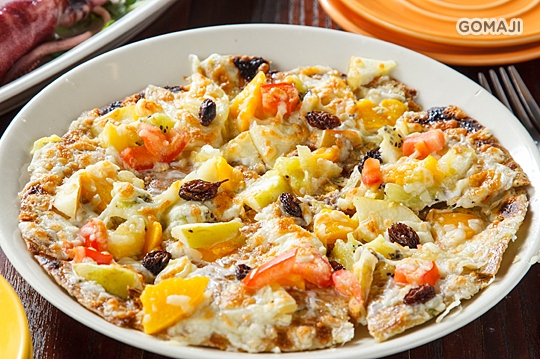 繽紛新鮮蔬果搭上金黃酥香的餅皮,這道水果蔬菜園披薩一上桌就引人垂涎,清爽鮮香不膩口,不論大人小孩都喜歡!