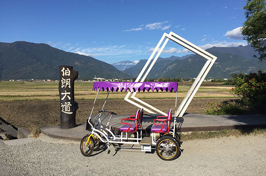 因「伯朗咖啡」多支廣告都在這裡拍攝,因而得名。現因為航空公司找來金城武來此拍廣告,知名度更是大增!整片的稻米田,無論是成長中的翠綠,亦或是準備收割的金黃,都臺東有高山、有縱谷、有溪流、有海洋,來到臺東能夠徜徉在沒有邊界的自然教室,全然的放空,體驗這塊美麗的土地,享受自在愜意的慢活步調。