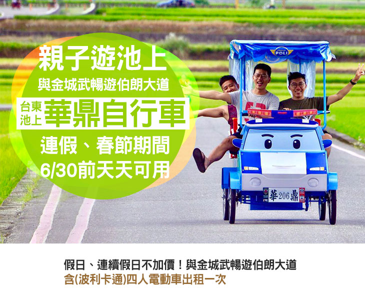 臺東,靠山面海,孕育了豐富的自然生態,純淨、天然是臺東最純樸的驕傲。其中長約21公里的山海鐵馬道,更是單車族的最愛,串起了許多知名景點,沿途經過山景、海濱、森林、河流等景觀,騎上單車就能將台東美景盡收眼底!台東是值得您放慢腳步、細細體會的美好城市!【台東池上-華鼎自行車】提供優質車型,平時細心保養,讓您能夠安全放心的好好欣賞周邊美麗景緻,徜徉於此,所有的煩惱彷彿都一掃而空了!