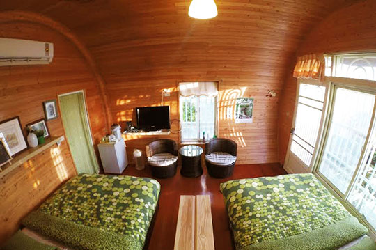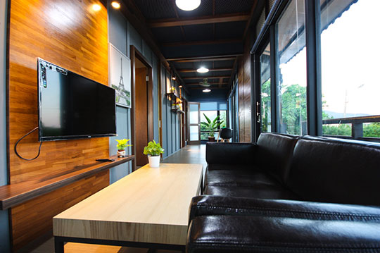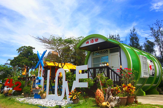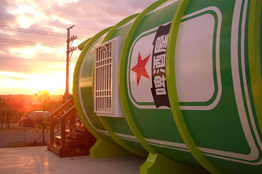 融合台灣本土風格的啤酒屋,座落在田園間,給人一種新奇的視覺享受,後現代的衝突設計概念,讓人很難不多看一眼!個性十足的工業風格房型, 備有客廳,提供旅人們更多的休憩空間!