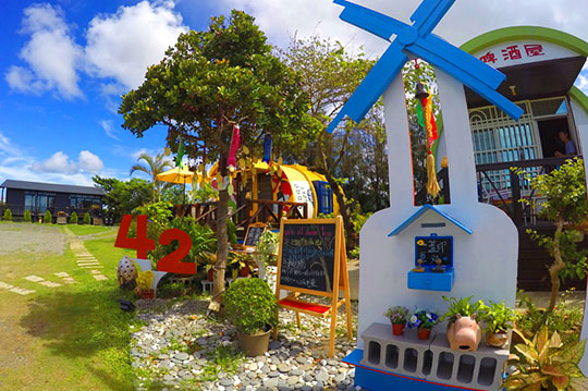 墾丁海角42號三館,坐擁良好的自然環境,鄰近恆春古城西門、恆春基督教醫院等,佔地將近500坪劃分出住宿區、烤肉區、種植區等複合式空間,民宿被大自然的綠意包圍著,讓旅人們遠離塵囂的紛擾,回歸到最恬靜的田園生活,體驗樂活悠閒的氛圍!