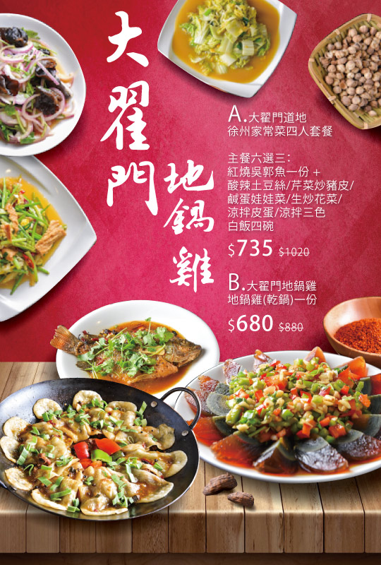 地鍋雞是一道漢族名菜,地鍋菜起源於蘇北和魯南交界處的微山湖地區。以前在微山湖作息的漁民,因船上條件限制,往往取一小泥爐、爐上做一口鐵鍋,下面支幾塊乾柴生火,再按著家常做法煮上一鍋菜,鍋邊還要貼滿麵餅,於是便產生了這種飯菜合一的烹調方式!地鍋菜的湯汁較少,口味鮮醇、餅借菜味、菜借餅香,具有軟滑與干香並存的特點!香氣濃郁、獨特的好滋味,值得您前來細細品嚐!