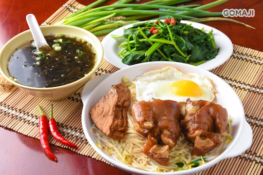 排骨乾麵線/腳蹄乾麵線/腿庫乾麵線/招牌腿庫飯/腳蹄飯 五選一 + 紫菜湯一碗 + 燙青菜一份,麵線類皆附豆芽菜+豆腐+荷包蛋;飯類皆附筍乾+豆腐+荷包蛋