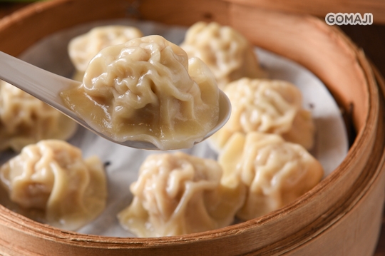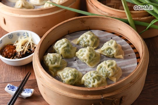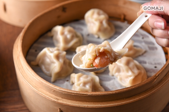 晶瑩透薄的白色外皮緊鎖精華美味,快夾起這被熱氣蒸騰而滑溜的手工蒸餃,感受著香氣在舌尖與兩頰間竄流,怕一口吃不完的麻吉記得善用湯匙,才能把握住享受每一滴湯汁的機會!