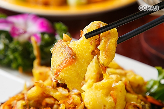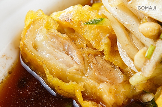 金黃酥脆的雞肉,淋上獨家調配醬汁,酥脆彈牙的黃金外皮,嚐進嘴裡喀滋作響,內層包覆柔嫩多汁的鮮肉,越嚐越涮嘴!