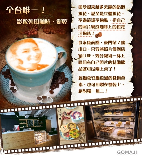 全台唯一影像拉花,打造魔法學院+韓風花牆及 iMax 攝影棚! wifi 隨拍隨傳,手機裡的珍貴照片都可以變成客製化專屬飲料~自拍美照、毛孩萌樣、情侶放閃等,現在都可以輕鬆印在拿鐵和奶茶上啦!精選來自中美的咖啡豆與來自英國的紅茶茶葉,混和牛乳調配出完美比例後,鋪上特製奶蓋再拉花影像,絕對是大大的視覺與味覺雙重滿足! ✔ 影像列印拿鐵