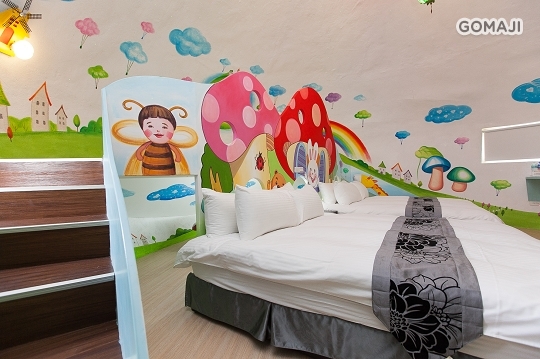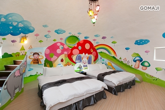看這超可愛的外型,是不是很想進去一探究竟呢?充滿童趣的磨菇屋六人房,讓您彷彿置身童話故事般,房內空間跟外觀一樣繽紛、活潑呢!快跟麻吉們相約到這享受精彩的夜晚吧!