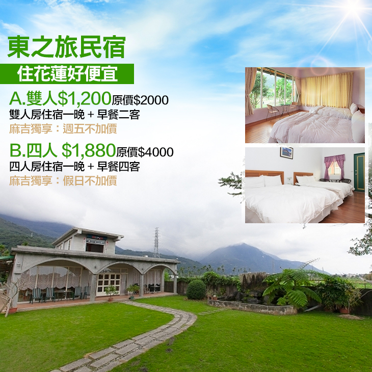 【花蓮-東之旅民宿】感謝麻吉們熱烈搶購,已全數賣光光。
