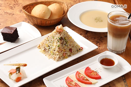 前菜:馬丁尼洋芋杯/和風田園沙拉/義式蕃茄起司盤 任選一 + 湯品:玉米巧達濃湯/山藥燉排骨/菜瞻燉野菇湯(素) 任選一 + 法式小圓麵包一份 + XO醬海鮮炒飯一份 + 甜點:歐風蛋糕/風味冰淇淋/季節水果 任選一 + 飲品:濃縮咖啡/美式咖啡/冰拿鐵/紅茶/奶茶/柳橙汁/葡萄柚汁 任選一