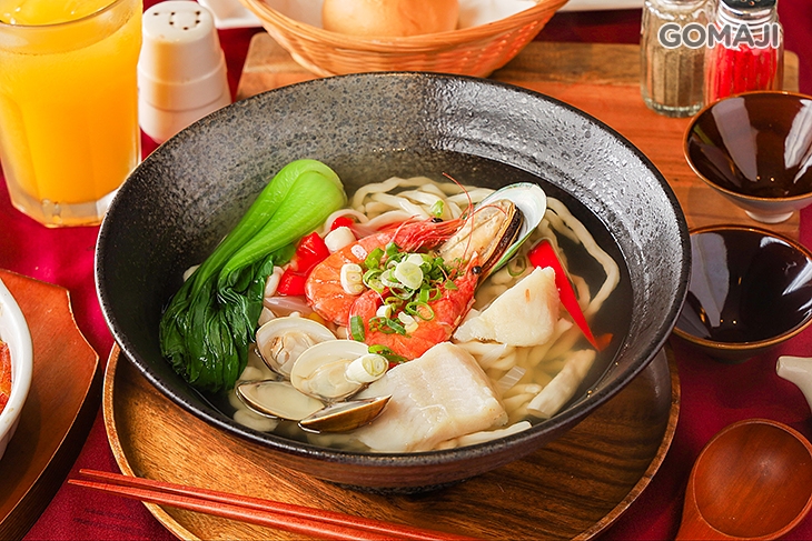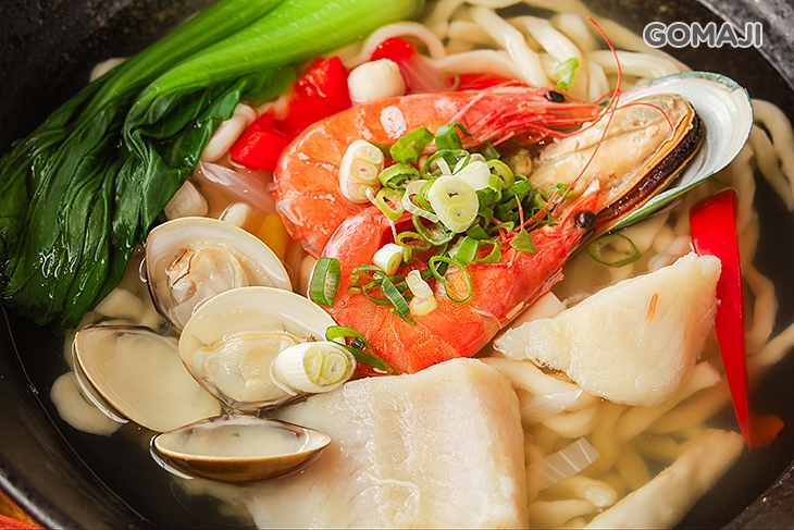 彈牙飽滿的新鮮蝦子、肥美蛤蜊馬上擄獲您的味蕾,多樣海味與溫潤湯底完美融合,熱騰騰的點滴精華在齒頰間跳躍起舞,甘美清甜的氣息如海浪般席捲而來,好吃到久久無法自己!