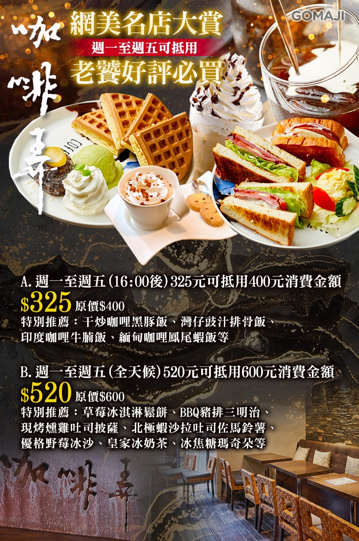 A.週一至週五(16:00後)325元可抵用400元消費金額