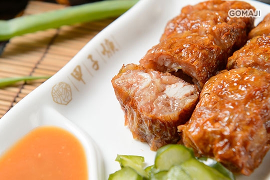 噴香誘人的五香肉捲,紮實可口的飽滿肉質,佐上小黃瓜與沾醬,不會讓人感到又油又膩!