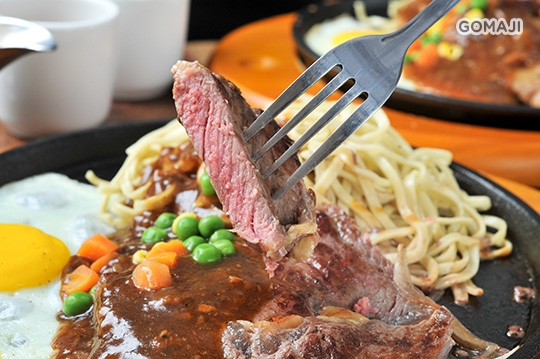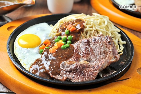 鐵板上滋滋作響的鮮嫩牛排讓人看著就垂涎不已,鮮嫩彈牙口感帶出牛肉特有的迷人氣息,鹹香精華在口中釋放,每一口都讓人直呼滿足!