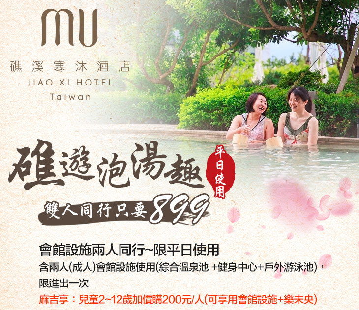 ※ 麻吉享:兒童2~12歲加價購200元/人(可享用會館設施+樂未央)。