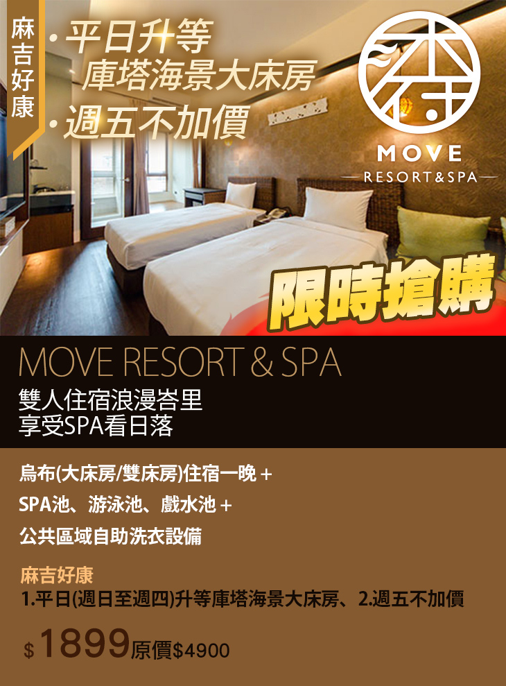 【台南-沐府海旅MOVE Resort&spa】感謝麻吉們熱烈搶購,已全數賣光光。
