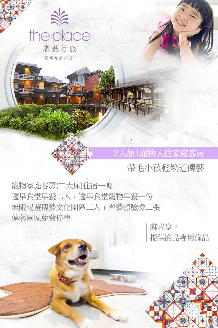 ※ 本優惠為2人+1寵物使用,加 1 隻寵物需加價1000元+10%(含寵物備品),每房最多可加 1 隻