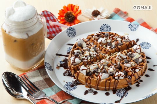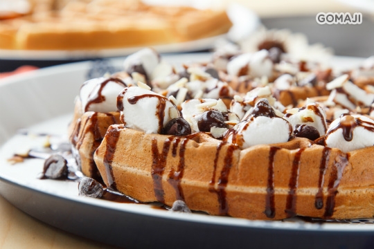 棉花糖與巧克力的結合是最甜蜜的絕佳搭配!香濃的巧克力香氣在口中細緻化開,豐富的滋味令人嚮往,與鬆餅一塊品嚐,多層次口感更富含滿滿好味道!