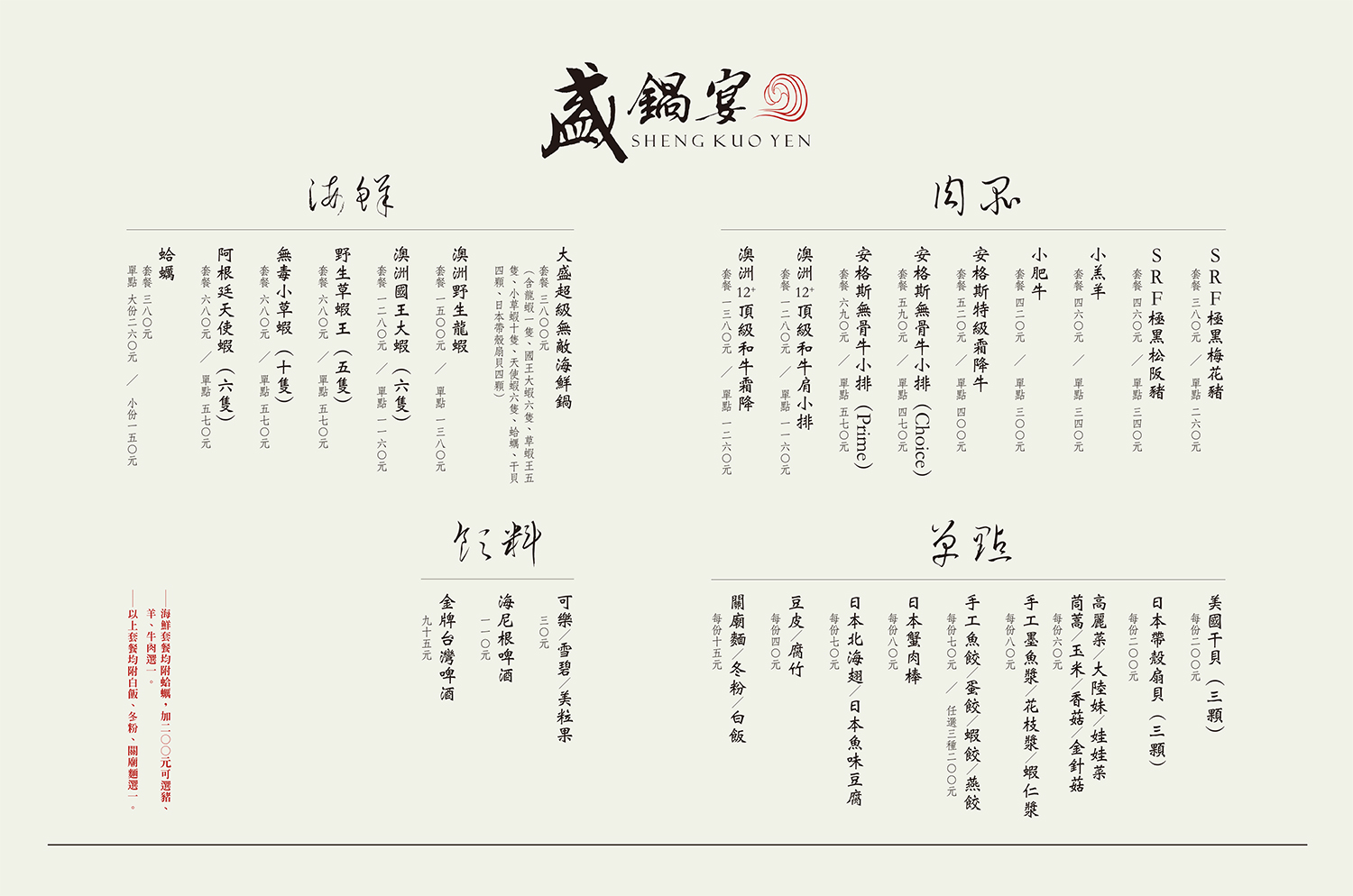 ※ 雙人、四人優惠套餐、大盛超級無敵海鮮鍋套餐不適用