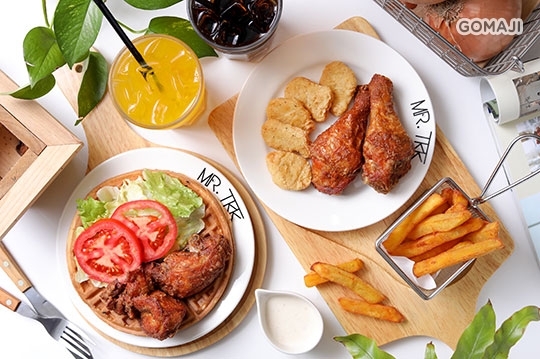有別於一般的頂呱呱門市,販賣的不僅僅是炸雞餐而已,更是為您提供了獨特美味的炸雞鬆餅和香濃的 illy 咖啡。在這輕鬆愜意的咖啡廳,你可以一邊吃著炸雞配咖啡,一邊閱覽著雜誌享受著休閒的下午茶時光,也可以在這裡與三五好友聊天聚聚,MR.TKK 希望能帶給大家愉快放鬆的一天。