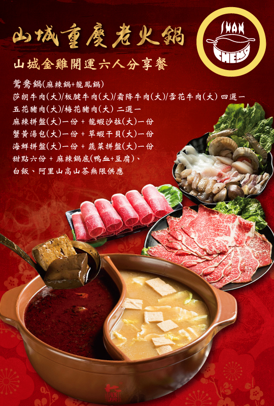 噴香誘人的經典麻辣鍋,香辣過癮好滋味,搭配各式豐富食材與新鮮肉片,愈吃愈涮嘴!