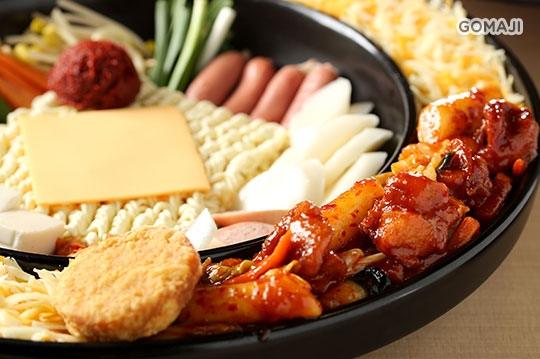 食材上桌後服務人員就會幫忙拌炒,炒至半熟後鋪上雙色起司,雙色起司緊緊包裹著雞肉,搭配恰到好處的鹹味在口中蔓延開來,如此美味世承自韓國六十年老店配方製作,如金黃波浪般的襲捲而來,佐上豐富的配料,拌炒過後引出食材的原汁原味,挑逗味蕾無止盡的欲望!建議先用湯匙再用筷子夾,吃進豐富而有層次的滿足感!