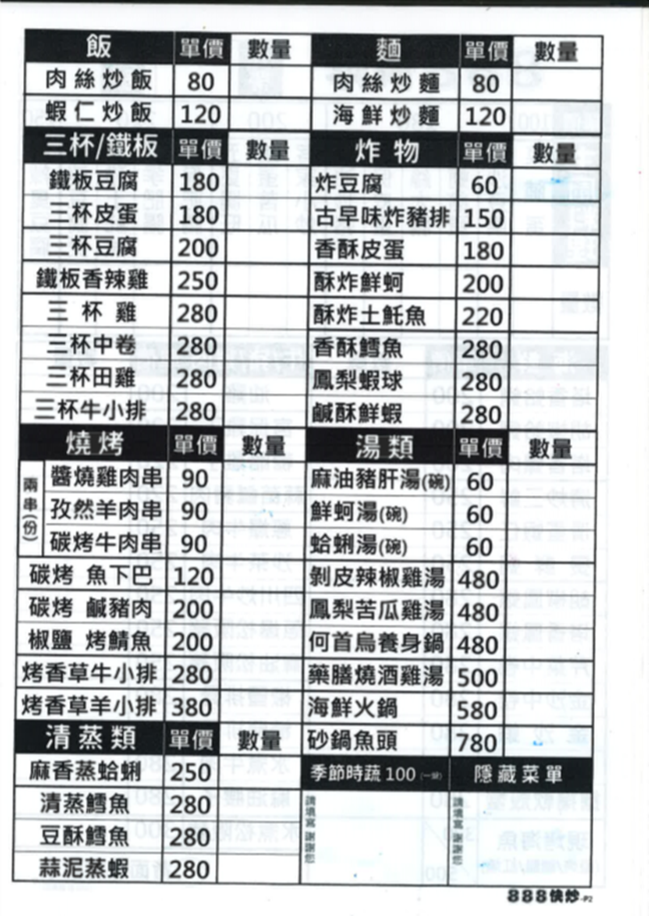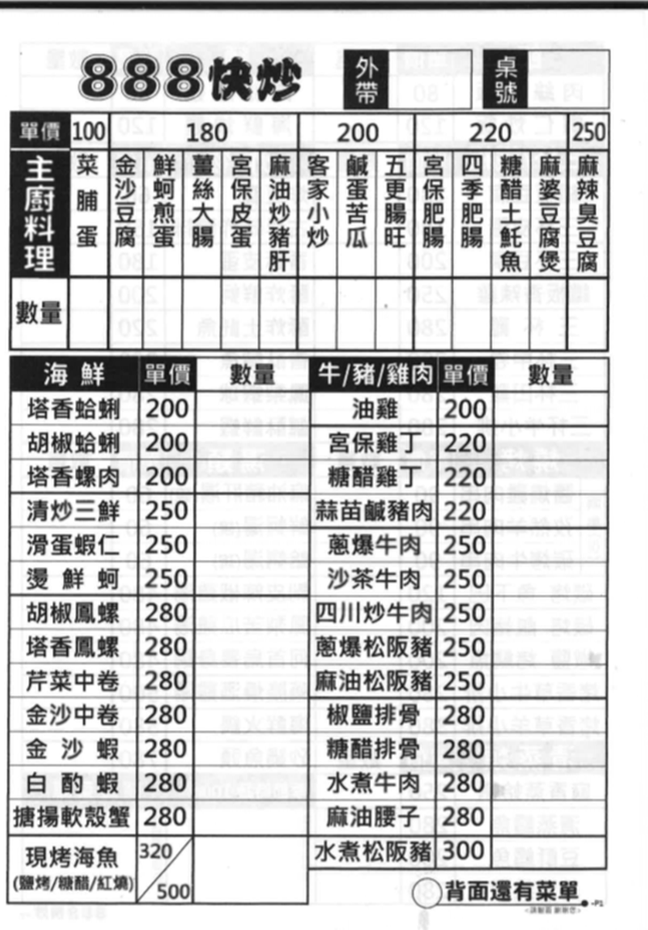 位在新竹市北區光華東街上的888快炒,專賣平價美味的熱炒料理,選用新鮮食材精心烹調,為您獻上客家小炒、砂鍋魚頭、麻辣臭豆腐、金沙豆腐等經典菜色,不計成本給您前所未有的味蕾體驗~寬敞舒適的用餐空間,非常適合家庭聚餐、朋友聚會、公司聚會,這麼好的機會怎麼能錯過,心動不如馬上行動!