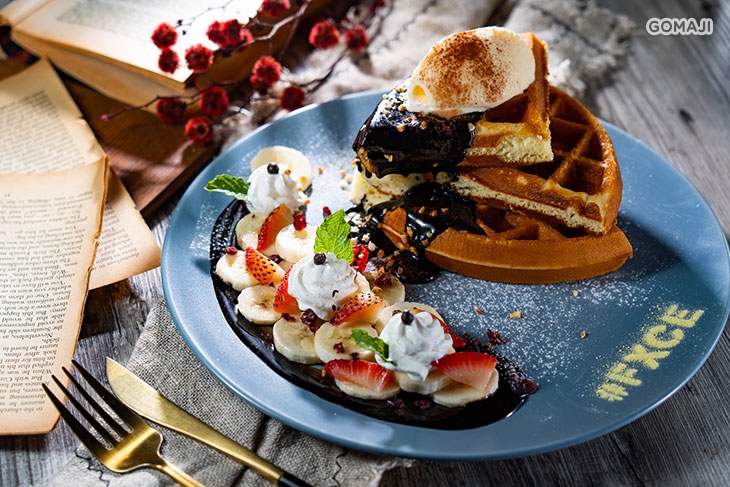 巧克力與香蕉是最合拍的完美搭配,現烤的鬆餅帶有天然麵粉香氣,再放上一球冰淇淋,堆疊出甜蜜夢幻的滋味,是女孩非常喜歡的超人氣甜點!