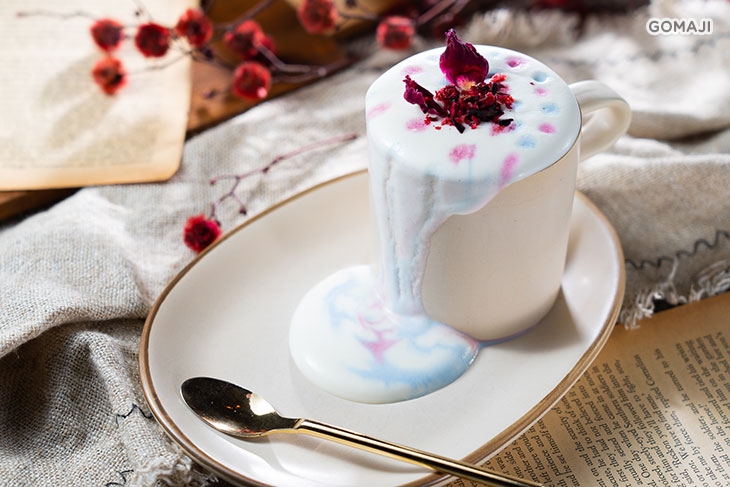 一端上桌就馬上聽到少女們的驚呼聲!特製的發霉奶茶有著夢幻的色澤,彷彿進入了童話世界,感受此刻浪漫氛圍~