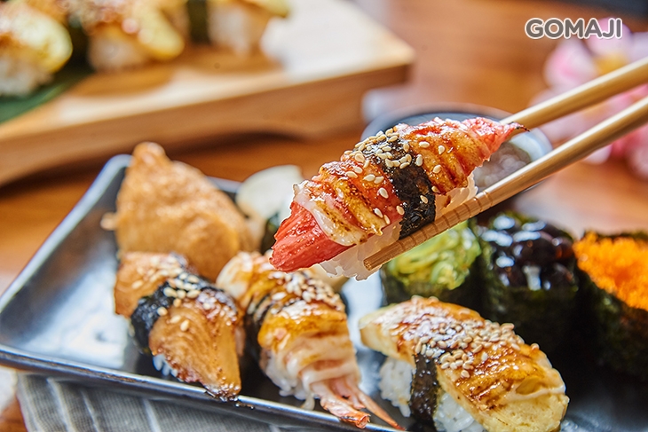 經驗老道的師傅,將食材與米飯溫柔捏製,將兩者緊密結合,不過於鬆軟,也不過於硬實,層次豐富在唇齒間精彩演出!