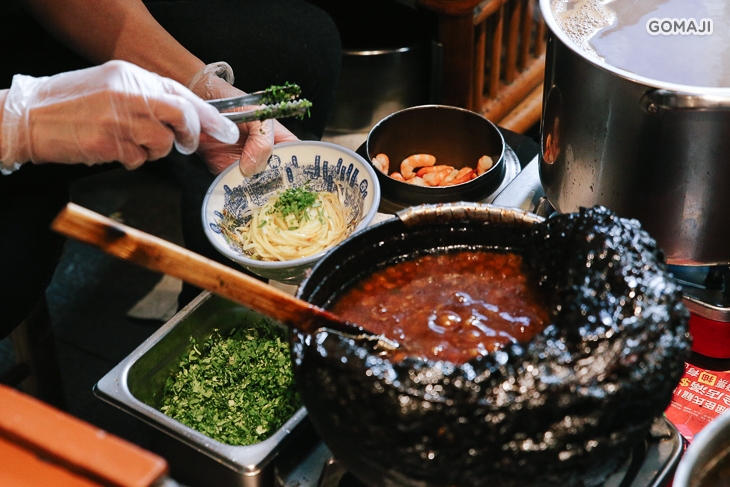 擔仔麵的特色在於精緻小碗的質量,以百年老鍋的滷汁,經年保持高溫熬煮的肉燥,氣味香醇,搭配甜蝦頭熬成的高湯。上桌之前,先以熱水熱碗,麵稍微汆燙一下,撒上豆芽、香菜,再佐以肉燥、蒜泥、五印醋、蝦仁,就成為一碗風味特殊的擔仔麵