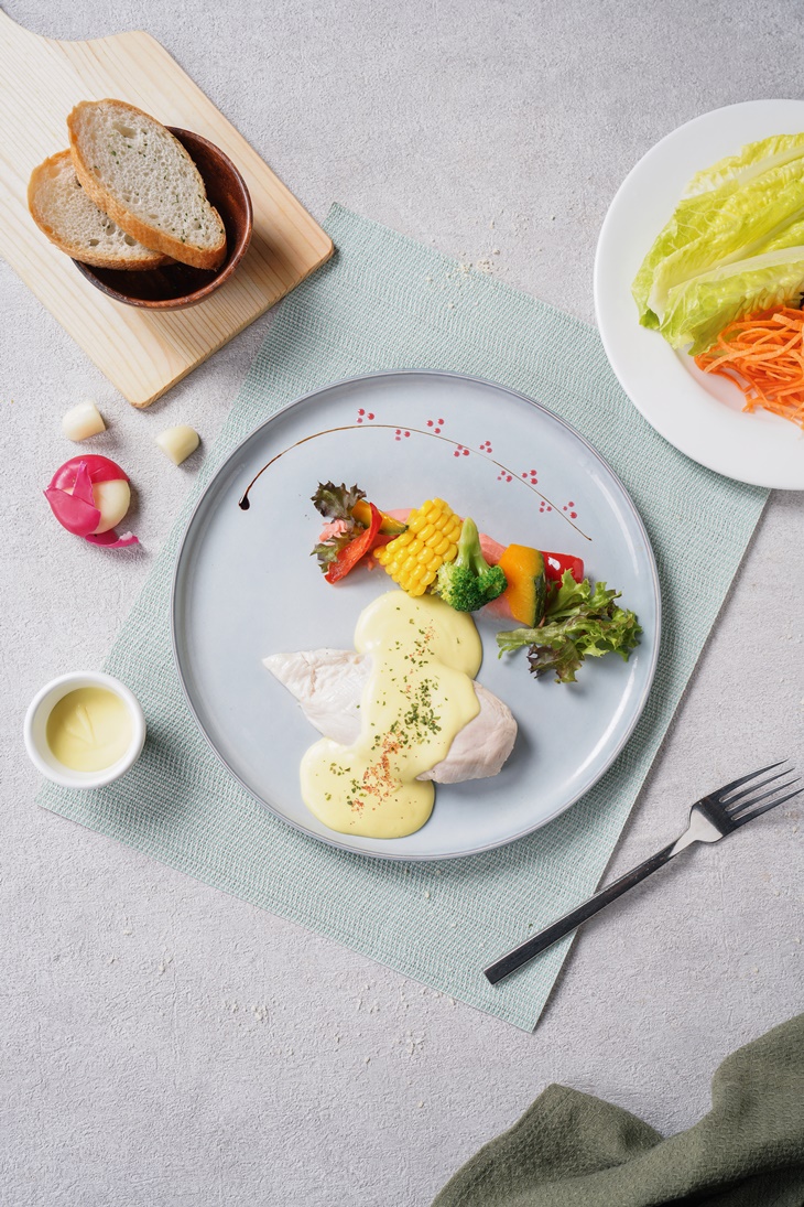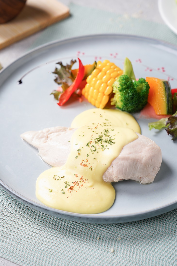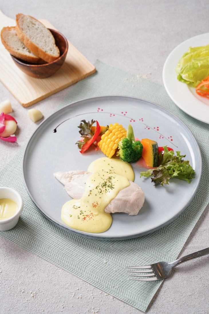 嫩雞以低溫烹調鎖住肉汁,切開時可見滑潤的質地,入口柔軟細緻。搭配香濃的乳酪起司醬,鹹香氣息在舌尖蔓延,帶出層層奶香與雞肉的自然鮮甜。整體風味溫潤而不膩,每一口都充滿恰到好處的濃郁與滑順感,是喜歡濃香口感的人必試的主菜之一。