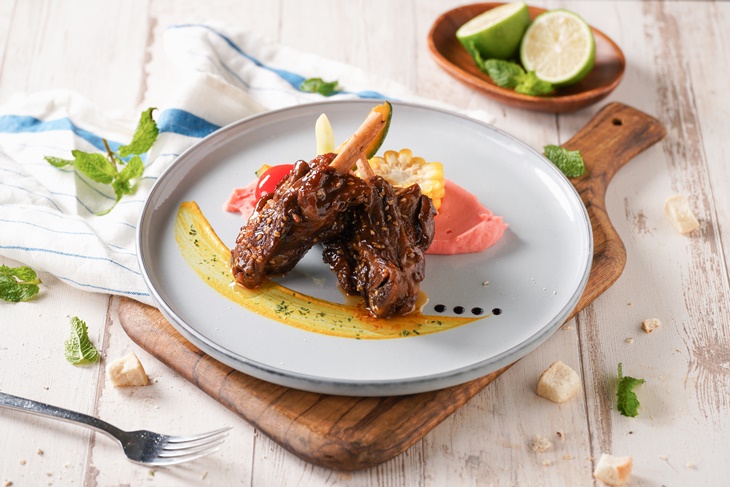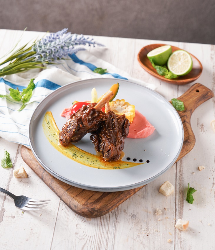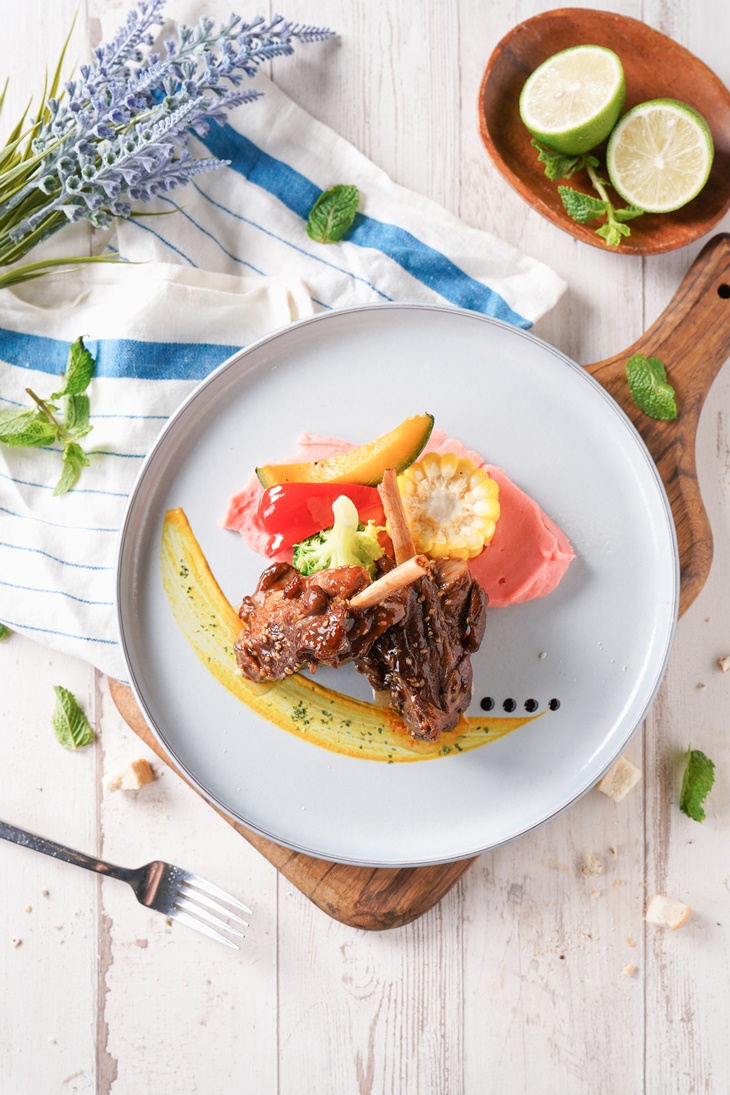 豬腱骨經慢火烤製,外層微焦、內裡柔嫩多汁,肉質扎實卻不乾柴。蜂蜜的甜潤與檸香的微酸交織出豐富層次,入口先甜後香,最後留下一抹清爽尾韻。越咬越能感受到肉香與醬汁融合的濃厚風味,是重口味愛好者的絕佳選擇。