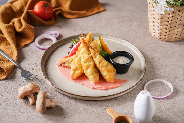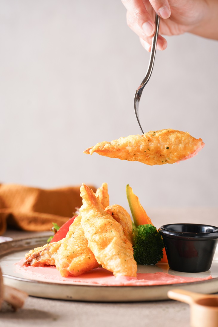 外層炸得金黃酥脆,輕咬便能感受到薄脆外衣的聲響與內裡細嫩魚肉的鮮美對比。塔塔醬的酸香點綴出鮮魚的清甜,使整體更加清爽不膩。魚香在口中化開後,伴隨微酸的滑順醬汁,形成絕妙平衡,是道讓人吃完仍意猶未盡的輕盈料理。