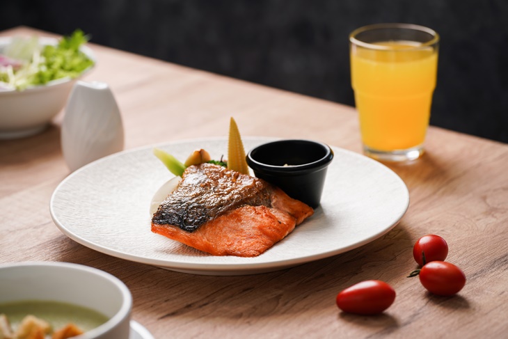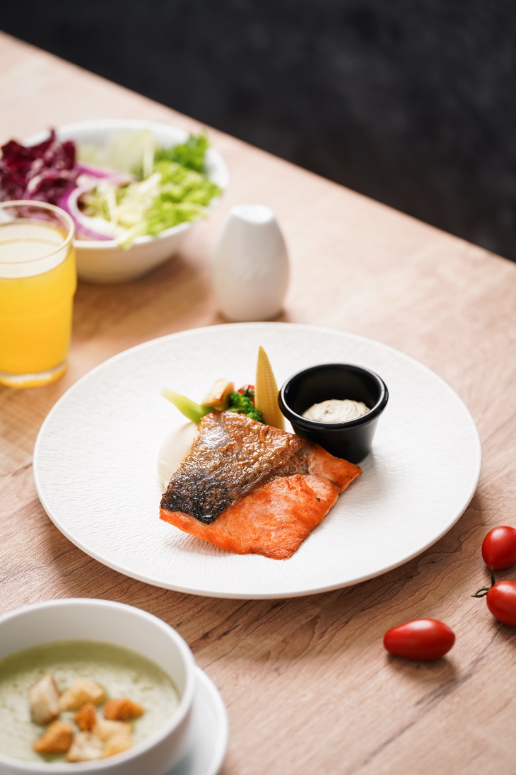 鮭魚烤得剛剛好,外層微酥、內裡保持柔嫩多汁,咬下去時能感受到鮭魚特有的油潤與香氣。白酒酸豆奶油醬讓整體味道更加立體,多了酸香與滑順感,將鮭魚的風味拉得更亮。醬汁不過度搶味,反而像是在幫鮭魚點出更乾淨的鮮香。若你喜歡帶點厚度、帶點細緻層次的魚料理,這道真的會讓人一試成主顧。.jpg)