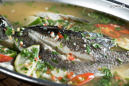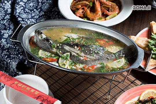 肥美誘人的泰式檸檬清蒸鱸魚上桌囉!結實飽滿的魚肉嚐起來入口即化,濃濃的南洋風情在舌尖上起舞,自然鮮甜伴隨著檸檬的清爽微酸,老饕也無法抵擋!