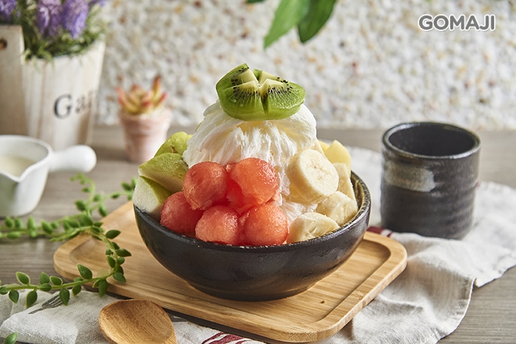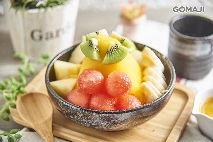 選用當季新鮮水果,將水果整齊排列,在不同色彩的水果點綴下讓整碗冰品更加亮眼!水果的自然酸甜與牛奶的溫潤相互交織,綿密細緻的冰品讓人一口接一口!