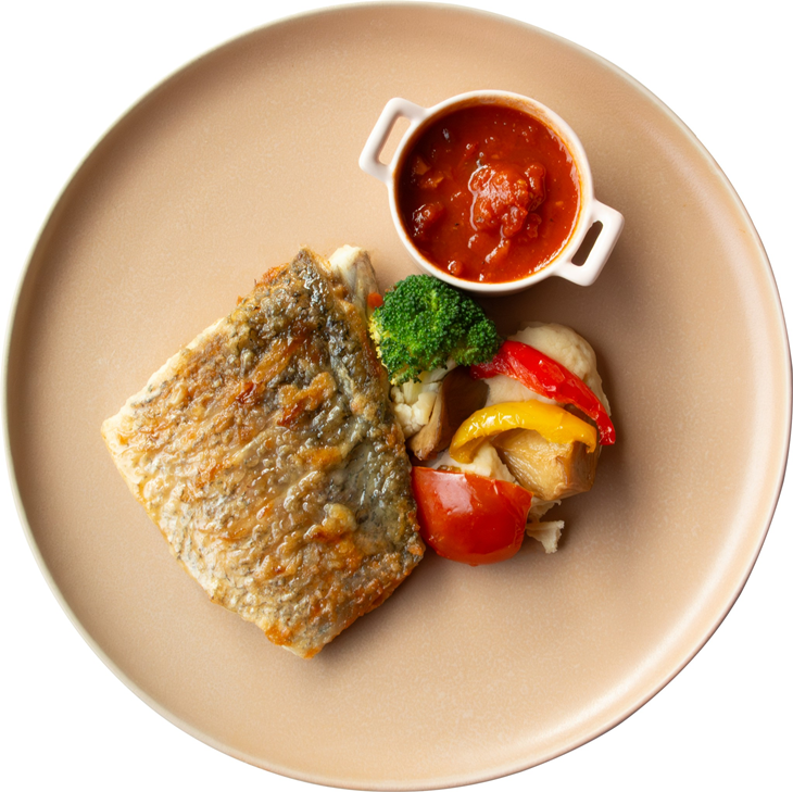 地中海乾煎鱸魚排佐義式紅茄醬