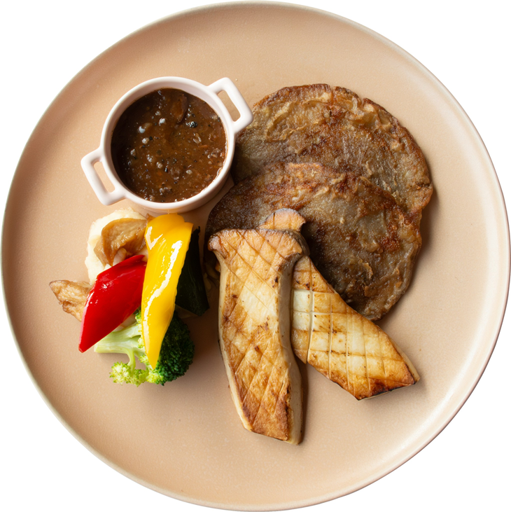 板煎彩蔬雙菇排佐黑胡椒醬(素)