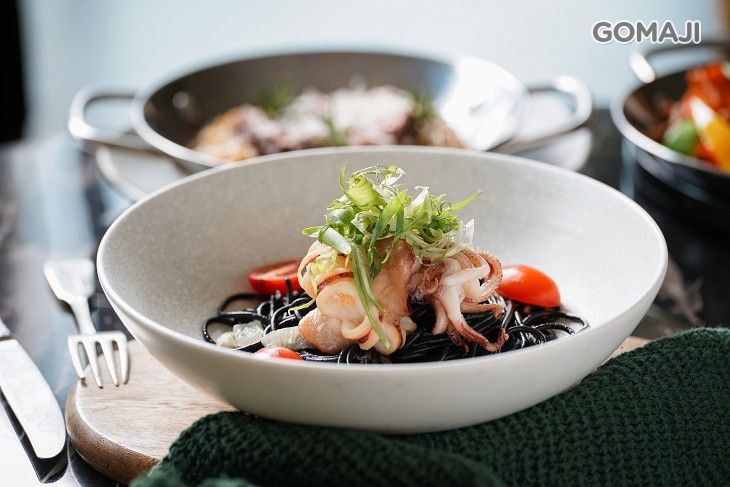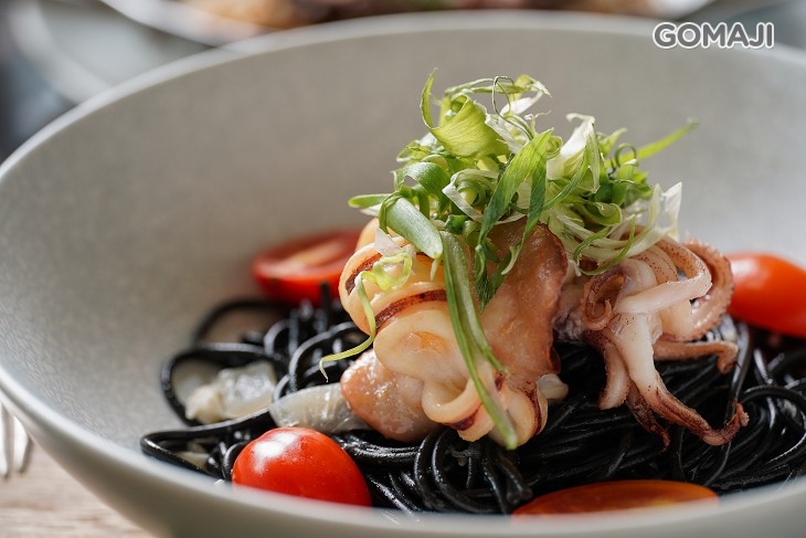 嚴選肉質飽滿、紮實的極鮮威尼斯中卷,搭配墨黑迷人的墨魚麵料理,濃濃的鮮香陣陣撲鼻,一上菜便讓人口水直流!細細品味,恰到好處的調味讓中卷呈現最天然的鮮甜,一口風味獨道、口感勁道的墨魚麵、一口甘甜極鮮的中卷,頂級美味讓人欲罷不能!