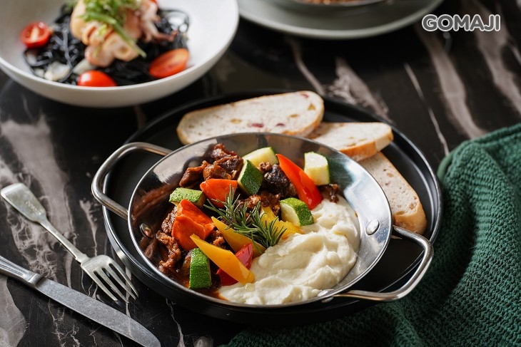 將主廚的好手藝展露無遺!上等牛肉經過長時間的文火慢燉,肉質變得柔軟且多汁,入口便能感受豐盈的湯汁伴隨肉香於齒唇之間爆發,搭配綿密的馬鈴薯泥一同享用,天然的馬鈴薯香淡雅宜人,和風味較香濃的燉牛肉一拍即合,共譜完美的美味樂章!