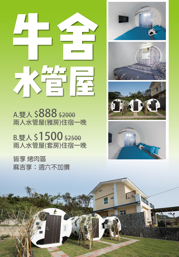 雙人住宿,體驗特色水管屋.親子烤肉趣