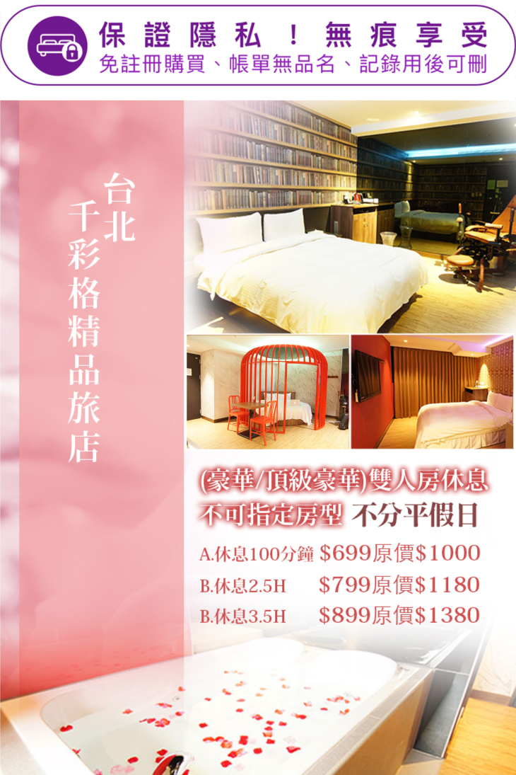 【台北-千彩格精品旅店】感謝麻吉們熱烈搶購,已全數賣光光。