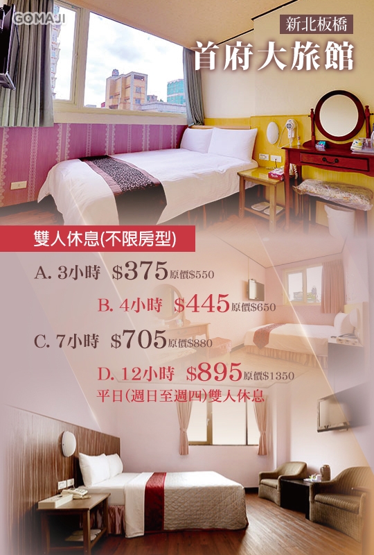 【新北板橋-首府大旅館】感謝麻吉們熱烈搶購,已全數賣光光。
