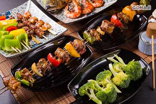 霸王燒肉串 松阪豬 / 牛肉串 / 甜椒 特製肉串 鯖魚 / 明蝦 新竹貢丸 / 特製肉串 菜色內容依季節時令調整,實際菜色、價目依現場提供為主