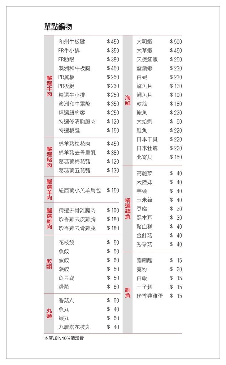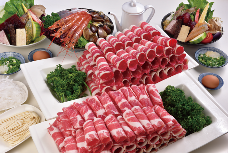 精心挑選的各式肉品,品質新鮮,肥瘦適中,油花分布勻稱細緻又美麗,片片堆疊而起,有如藝術品般的優雅精緻,取片下鍋滾水涮煮,掌握黃金秒數,肉嫩味鮮,讓眾人的味蕾分秒被這迷人美味給攻陷、佔據。